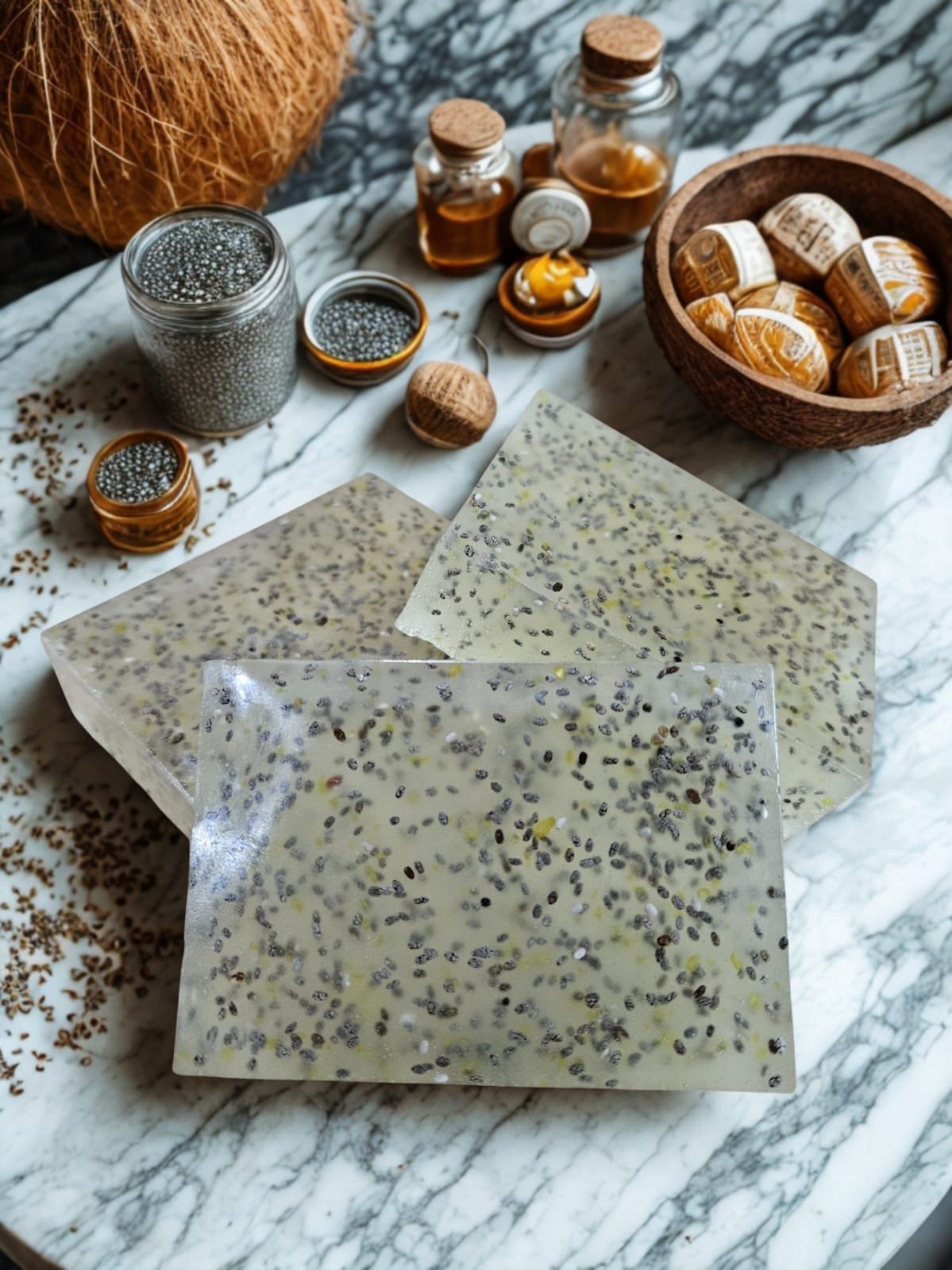 El jabón de chía es un jabón natural que utiliza las semillas de chía por sus propiedades exfoliantes, antioxidantes e hidratantes, gracias a su riqueza en omega 3, vitamina E y minerales como el zinc y el magnesio, ayuda a mejorar la textura de la piel, suavizarla, desobstruir los poros y protegerla de los daños.